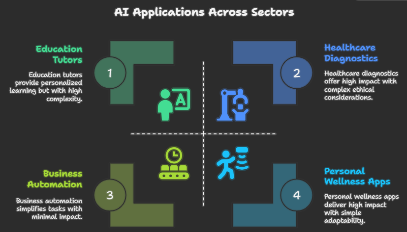 • Healthcare: Early diagnostics, but ethical dilemmas around who “owns” the AI’s decision.